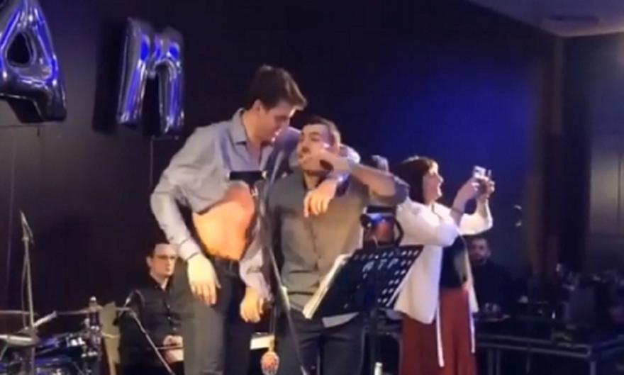 Ο Κώστας Σλούκας πήρε το μικρόφωνο και τραγούδησε Ρέμο με τον Τσέχο συμπαίκτη και καλό του φίλο στο πλευρό του, ενώ ο Ζέλικο Ομπράντοβιτς χόρεψε με τους παίκτες του.