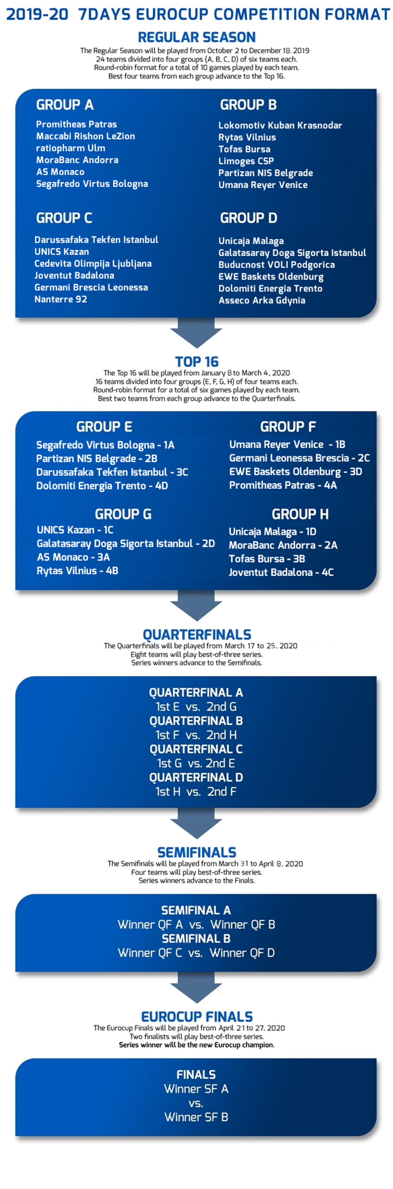 Το Top 16 θα διεξαχθεί από τις 8 Ιανουαρίου μέχρι τις 4 Μαρτίου και οι δύο πρώτες ομάδες προκρίνονται στα προημιτελικά.