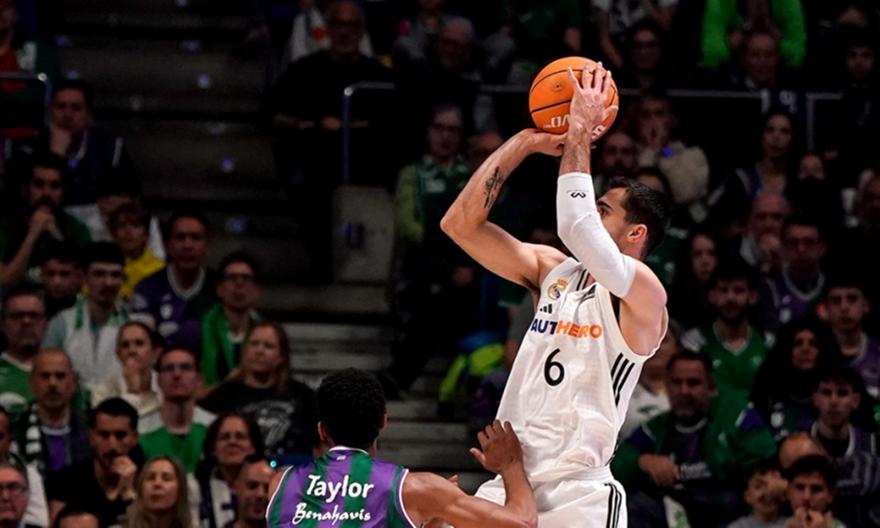 Ματσάρα NBA και θρίαμβος για τη Ρεάλ! Παρόλο που βρέθηκε στο -11 στο ξεκίνημα της τελευταίας περιόδου, η «βασίλισσα» έκανε την ανατροπή κόντρα στην Ουνικάχα Μάλαγα και νίκησε με το εντυπωσιακό 107-105 για την 24η αγωνιστική της Liga Endesa.