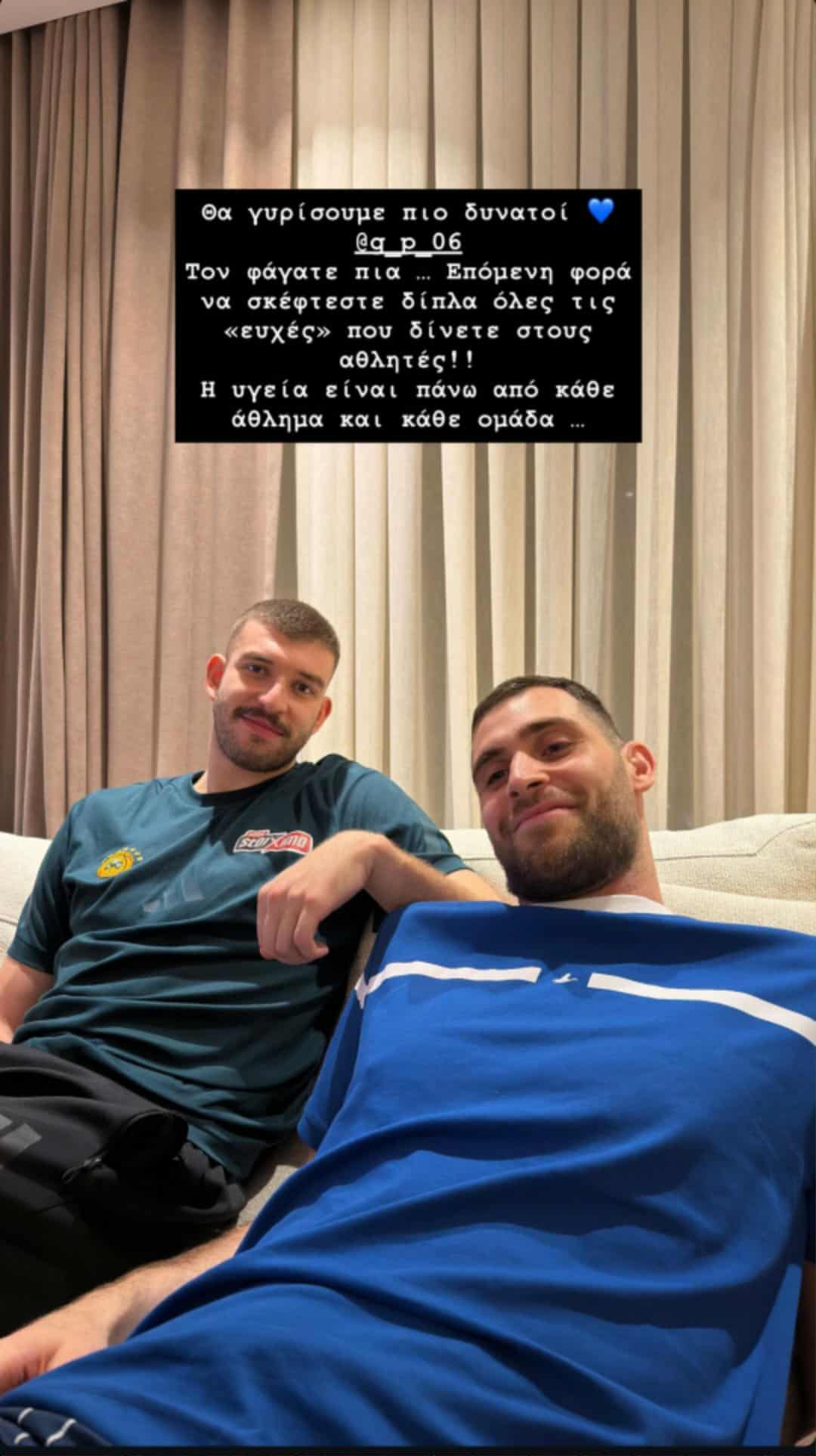 «Θα γυρίσουμε πιο δυνατοί. Τον φάγατε πια… Την επόμενη φορά να σκέφτεστε διπλά πριν δίνετε ευχές στους αθλητές. Η υγεία είναι πάνω από κάθε άθλημα και κάθε ομάδα», έγραψε μαζί με τη φωτογραφία η σύντροφος του Παπαγιάννη.
