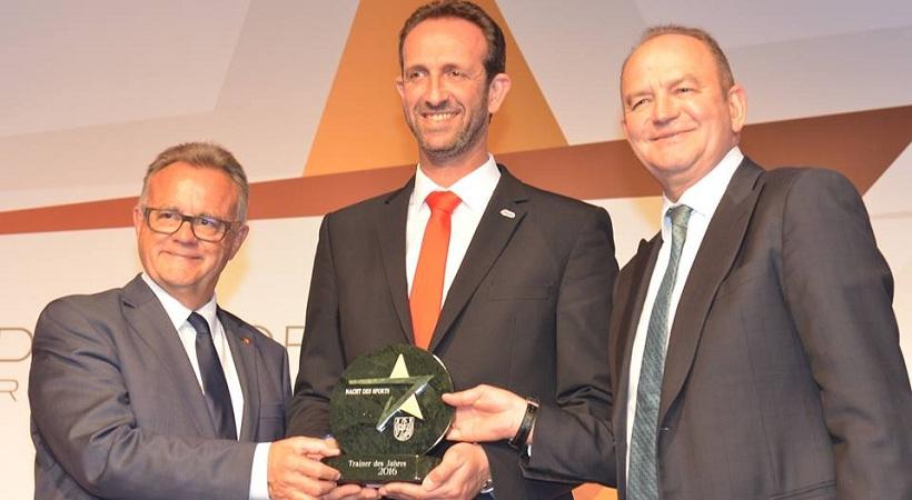 Μια ακόμη διάκριση για τον Κρις Χουγκάζ, καθώς αναδείχθηκε προπονητής της χρονιάς (για το 2016) στην Αυστρία για τη δουλειά του στους Όμπερβαρτ Γκάνερς.