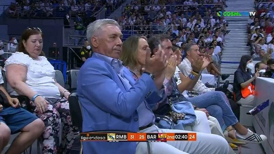 Στις εξέδρες του WiZink Center βρέθηκε ο προπονητής της ποδοσφαιρικής Ρεάλ, Κάρλο Αντσελότι και χειροκρότησε τις προσπάθειες των παικτών που μπήκαν δυναμικά.