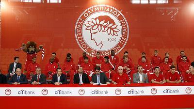 Με πολλά όνειρα για διακρίσεις εντός και εκτός των τειχών και μέσα σε ένα φαντασμαγορικό σκηνικό παρουσιάστηκε το μεσημέρι της Τρίτης η νέα ομάδα μπάσκετ του Ολυμπιακού. Το «παρών» έδωσαν άπαντες, από τη διοίκηση (αφοι Αγγελόπουλοι) και την τεχνική ηγεσία, μέχρι και τον… άσωτο υιό Σοφοκλή Σχορτσιανίτη και τον άρτι αφιχθέντα Μαρκ Τζάκσον.