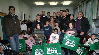 Οι παίκτες του Παναθηναϊκού μοίρασαν πολλά δώρα στα παιδάκια που περίμεναν με ανυπομονησία και έβγαλαν πολλές φωτογραφίες τόσο με τα παιδιά, όσο και με το υπαλληλικό προσωπικό της εταιρείας. Στη συνέχεια, όλη η ομάδα ανέβηκε στον πέμπτο όροφο του κτιρίου, όπου φιλοξενούνταν μία άλλη πτέρυγα από μικρά παιδάκια και έβγαλαν και εκεί φωτογραφίες, μοιράζοντας, παράλληλα, δώρα. Η συγκίνηση ήταν έκδηλη σε όλα τα «πράσινα» πρόσωπα και χαρακτηριστικές είναι οι δηλώσεις του Βασίλη Σπανούλη: «Είμαστε όλοι χαρούμενοι που ήρθαμε σήμερα εδώ και δώσαμε λίγη χαρά σε αυτά τα παιδιά και το σωστό είναι τέτοιες επισκέψεις να μη γίνονται μόνο τέτοιες ημέρες, αλλά ολόκληρο τον χρόνο. Όταν βλέπεις πόσο πολύ χαίροντα αυτά τα πρόσωπα, γίνεσαι και εσύ το ίδιο χαρούμενος», για να συμπληρώσει ο Αντώνης Φώτσης πως: «Γίνεται πολύ καλή δουλειά εδώ και είμαστε ευχαριστημένοι που βοηθήσαμε με την παρουσία μας. Αυτά τα παιδιά θέλουν αγάπη και η δική τους χαρά μας κάνει και εμάς χαρούμενους. Εύχομαι να υπάρχει πάντα υγεία και ο κόσμος να δέχεται και να δίνει αγάπη». Τέλος, ο Κώστας Τσαρτσαρής επεσήμανε πως: «Θέλουμε, με τέτοιες εκδηλώσεις, να δίνουμε χαρά σε όσα παιδιά έχουν ανάγκη και όταν βλέπουμε στα πρόσωπά τους το χαμόγελο, παίρνουμε και εμείς δύναμη. Είμαστε, πάνω από όλα, άνθρωποι και ο αθλητισμός έρχεται σε δεύτερη μοίρα, θέλουμε να δίνουμε χαρά και τις ευχές μας για ένα καλύτερο μέλλον. Εύχομαι χρόνια πολλά, πάντα υγεία και μεγαλύτερη αγάπη».