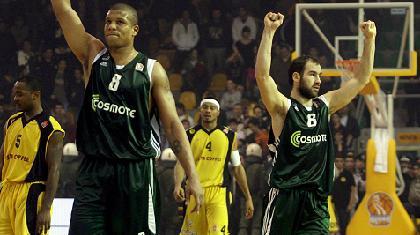 Ο Παναθηναϊκός κατάφερε να εξασφαλίσει το πολυπόθητο "εισιτήριο" για τον τελικό του Κυπέλλου Ελλάδος μπάσκετ των ανδρών, επικρατώντας πολύ δύσκολα του Αμαρουσίου στην παράταση με 76-72 (63-63 κ.α.), στο κλειστό του Αγίου Θωμά, στο πλαίσιο του πρώτου ημιτελικού της δοργάνωσης. Η αναμέτρηση ήταν πραγματικό ντέρμπι, με τις δύο ομάδες να βρίσκονται συνέχεια κοντά στο σκορ. Οι «πράσινοι» ήταν πιο ψύχραιμοι στην παράταση και, με το τρίποντο του Σπανούλη 1:40’ (67-70) πριν το τέλος του αγώνα, κατάφεραν να πάρουν τη νίκη.