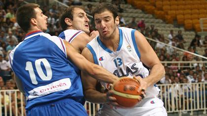 Κάποια εύκολα λάθη και κακές επιλογές στην επίθεση έδωσαν τη δυνατότητα στη Σερβία να προηγηθεί στα μισά της τέταρτης περιόδου με +4 (69-73) τον Γιόνας Καζλάουσκας να καλέσει τάιμ άουτ για να... συνετίσει τους παίκτες του. Οι φιλοξενούμενοι έφτασαν μέχρι και σε διαφορά έξι πόντων (69-75), αλλά ένα τρίποντο του Σπανούλη και δύο βολές του Σχορτσανίτη έφεραν τη διαφορά στο -1 (74-75), για να ακολουθήσει ένα απίστευτο τρίποντο του Τέπιτς, αλλά κι ένα από τον Λαρισαίο γκαρντ του Παναθηναϊκού (79-80). Μία βολή του Πάουνιτς κι ένα όμορφο καλάθι του Τέπιτς έφεραν τη Σερβία στο +4 (79-83), σχεδόν 80 δευτερόλεπτα πριν το φινάλε. Ένα παλικαρίσιο λέι απ του Σπανούλη, μία καλή ελληνική άμυνα και ένα επιθετικό ριμπάουντ του Σχορτσανίτη οδήγησαν τον τελευταίο στη γραμμή των βολών, 31’’ πριν το τέλος (81-83). Ο Big Sofo αξιοποίησε μόνο τη μία βολή, αλλά στην επόμενη επίθεση έκλεψε την μπάλα. Στην τελευταία επίθεση ο Βασίλης Σπανούλης αστόχησε υπό πίεση σε λέι απ και στα δέκατα του δευτερολέπτου που απέμεναν ο Φώτσης με ένα φόλοου απέτυχε να σκοράρει. Το σκορ δεν άλλαξε, με συνέπεια η Σερβία να πάρει τη νίκη με 83-82.