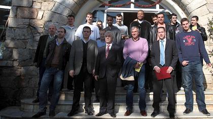 Μάλιστα παρέδωσε μία πλακέτα την οποία παρέλαβε εκ μέρους του προέδρου της ΚΑΕ Παύλου Γιαννακόπουλου (που δεν έδωσε το παρών λόγω ανειλημμένων επαγγελματικών υποχρεώσεων) ο υπεύθυνος μάρκετινγκ της ΚΑΕ, Ηλίας Κατσογιάννης, ο οποίος με την σειρά του είπε: «Ο κ. Γιαννακόπουλος δεν κατάφερε να παραβρεθεί σήμερα εδώ, γιατί είχε μία σοβαρή επαγγελματική υποχρέωση και θέλω εκ μέρους του να σας ευχαριστήσω για την φιλοξενία σας. Μακάρι να μπορούμε να κάνουμε πιο συχνά τέτοιου είδους επισκέψεις, Χρόνια Πολλά, με υγεία».