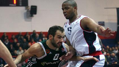 Ο Παναθηναϊκός επικράτησε πολύ δύσκολα του μαχητικού Πανιωνίου με 80-76 στη Νέα Σμύρνη αποφεύγοντας το στραβοπάτημα που έκανε προ δύο εβδομάδων στο ίδιο γήπεδο ο Ολυμπιακός. Συγκλονιστικό σε εξέλιξη το ματς, με τους «πράσινους» να καθαρίζουν το ματς στο τέλος και τους «κυανέρυθρους» να έχουν παράπονα από τη διαιτησία. Πέκοβιτς και Σπανούλης με 19 και 18 πόντους αντίστοιχα οι κορυφαίοι των νικητών, εξαιρετικός ο Παπανικολάου με 21 για τους ηττημένους.