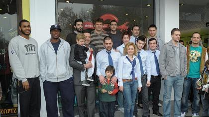 Τους παίκτες υποδέχτηκε ο υπεύθυνος του καταστήματος, που συμμετέχει στο χορηγικό πρόγραμμα της ΚΑΕ, Δημήτρης Κέμος.