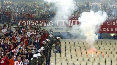 "Πράσινοι" και "ερυθρόλευκοι" οπαδοί... κατέλαβαν τα επίσημα και ο καρεκλοπόλεμος έδινε κι έπαιρνε. Οι φιλοξενούμενοι "πλακώθηκαν" με τους αστυνομικούς, ενώ ακόμη και πυροσβεστήρες βρέθηκαν στο παρκέ! Δυστυχώς, οι ανεγκέφαλοι έκαναν και πάλι την εμφάνιση τους.