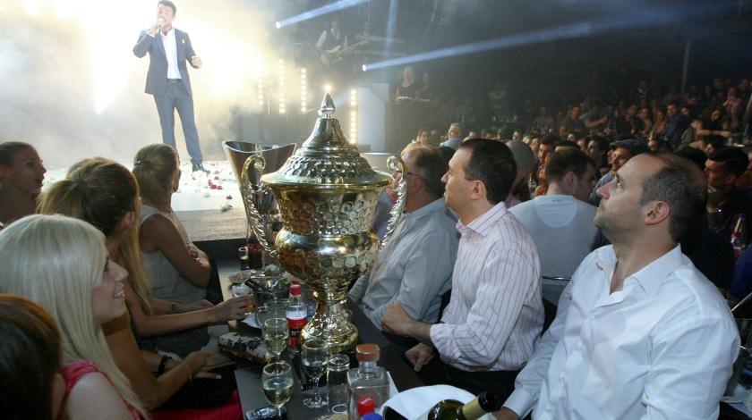 Στα τραπέζια των Πειραιωτών ξεχωριστή θέση είχαν, εκτός από τα λουλούδια και τα πούρα, οι κούπες του Πρωταθλήματος και της Euroleague, ενώ υπήρχε και μια τούρτα που απεικόνιζε τον Ντούσαν Ίβκοβιτς που συνοδευόταν με την… αφιέρωση «στον καλύτερο προπονητή που έχει υπάρξει».