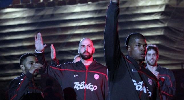 Μία φωτοβολίδα χτύπησε τον Κάιλ Χάινς στην πλάτη και ο Αμερικανός σωριάστηκε στο παρκέ. Μετά από λίγο όμως, οι «ερυθρόλευκοι» βγήκαν στον αγωνιστικό χώρο και το ματς άρχισε κανονικά.