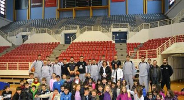 Κατά τη διάρκεια της άφιξης των «ασπρόμαυρων» στο «Παλατάκι» και λίγο πριν ξεκινήσει το πρόγραμμα του Σούλη Μαρκόπουλου, οι αθλητές και το τεχνικό τιμ συνάντησαν τους μαθητές από το 10ο Δημοτικό Σχολείο Συκεών, που πραγματοποίησαν εκπαιδευτικού χαρακτήρα επίσκεψη στο κλειστό της ομάδας.