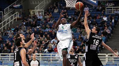 Πάντως, τα πράγματα ξεκίνησαν ιδανικά για το «τριφύλι», αφού κατάφερε να προηγηθεί με +14, χάρη στις εξαιρετικές προσπάθειες του Ντελκ, που σημείωσε οκτώ συνεχόμενους πόντους. Οι «πράσινοι» κατάφεραν να προηγηθούν με +10, λίγο πριν τη λήξη του πρώτου δεκαλέπτου, όμως κάπου εκεί οι γηπεδούχοι πίστεψαν πως το ματς τελείωσε και χαλάρωσαν χαρακτηριστικά, δίνοντας την ευκαιρία στους «μελανόλευκους» να ισοφαρίσουν αρχικά με τον Γιοσίποβιτς και στη συνέχεια να προηγούνται με έναν πόντο. Όμως, αυτό «ξύπνησε» τους γηπεδούχους, που στο μεταξύ είχαν παρατάξει μια μίνι αναπληρωματική ομάδα στο παρκέ και έτσι η διαφορά εκτοξεύτηκε στο +10 «εν ριπή οφθαλμού» και πήγαν στα αποδυτήρια τελικά με το +8.