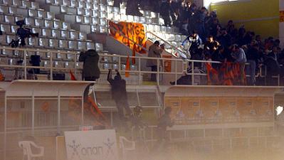 α) για την ρίψη καπνογόνου στην είσοδο των κερκίδων του γηπέδου, ήτοι για επεισόδια εντός γηπέδου κατά την διάρκεια του αγώνα, δυσφημιστικά για το άθλημα, την ποινή διεξαγωγής αγώνα χωρίς θεατές (κεκλεισμένων των θυρών) δυο (2) αγωνιστικών ημερών και πρόστιμο 4.000 και