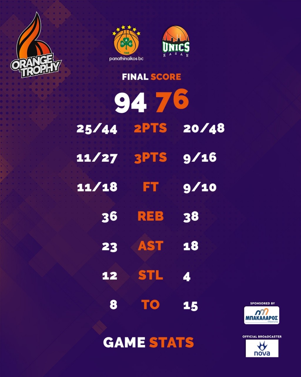 Η τρομερή εμφάνιση του Τζίμερ Φριντέτ εκτόξευσε τον Παναθηναϊκό στη φιλική νίκη επί της Ούνιξ Καζάν με 94-76, στο πλαίσιο του «Orange Trophy» που διεξάγεται στην Πάτρα.