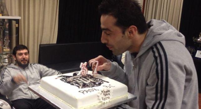 Μία τούρτα με τον δικέφαλο και τον αριθμό 37 (ο έμπειρος γκαρντ έκλεινε τα 37 σήμερα), γυρισμένο όμως ανάποδα για να δείχνει 73!