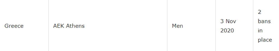 Έτσι, οι τιμωρίες που βρίσκονται σε ισχύ κατά των «κιτρινόμαυρων» είναι 2, οι οποίες όμως αναμένεται να τακτοποιηθούν τις επόμενες ημέρες.