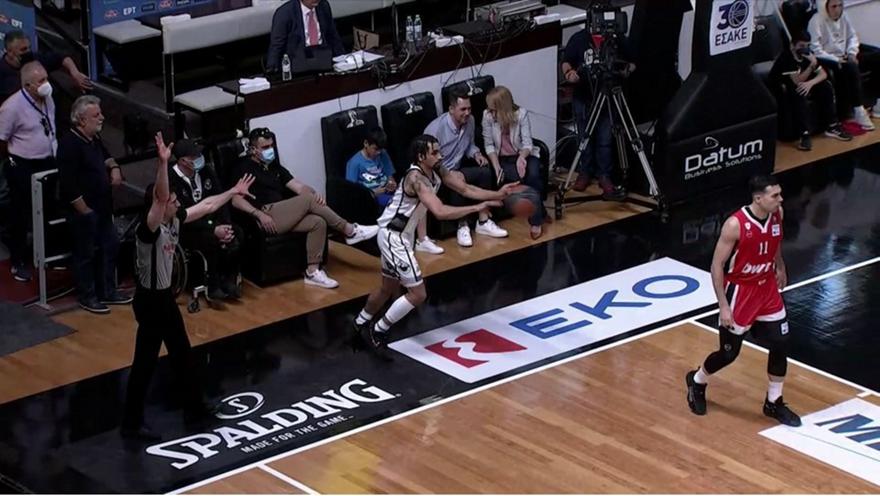 Βλέποντας τον Κώστα Σλούκα γυρισμένο με την πλάτη, πέταξε την μπάλα πάνω του και αιφνιδίασε την άμυνα των Πειραιωτών φτάνοντας σε ένα εύκολο λέι απ.