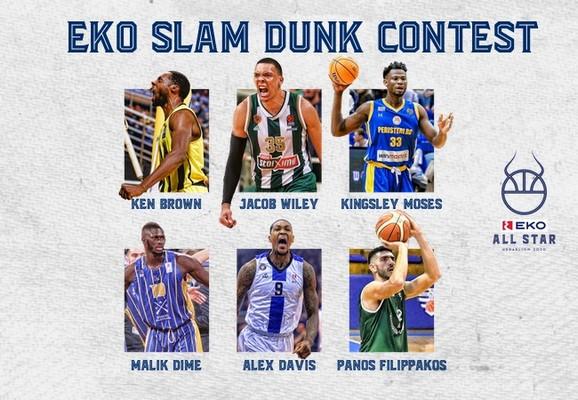 Ο Κεν Μπράουν του Άρη, ο Τζέικομπ Γουάιλι του Παναθηναϊκού, ο Κίνγκσλεϊ Μόουζες του Περιστερίου, ο Μαλίκ Ντάιμ του Κολοσσού, ο Άλεξ Ντέιβις του Ηρακλή, ο Παναγιώτης Φιλιππάκος της Δάφνης Δαφνίου και ο νικητής του διαγωνισμού των καρφωμάτων Rising Stars θα είναι οι 7 παίκτες που θα συμμετάσχουν στον διαγωνισμό καρφωμάτων του All-Star Game, που θα διεξαχθεί στο ημίχρονο του κεντρικού αγώνα της ερχόμενης Κυριακής (9/2, 17:00).