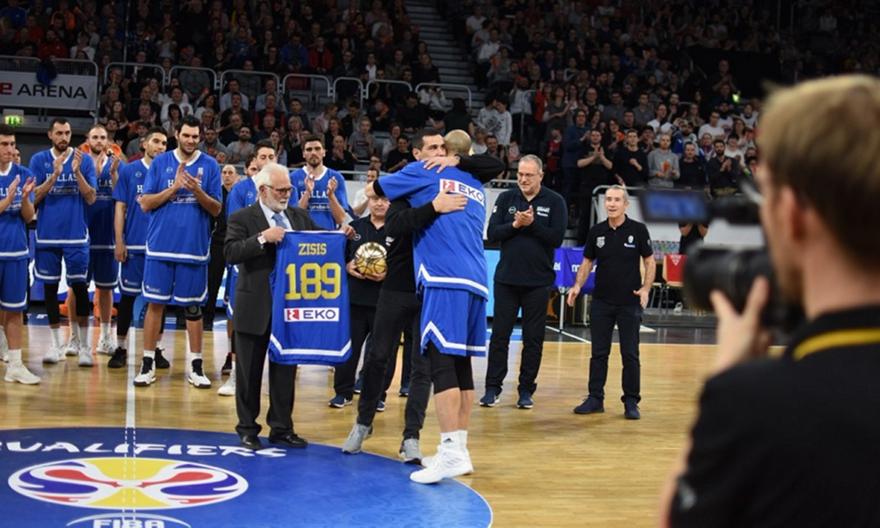 Η @HellenicBF τιμά τον @nik683 για την προσφορά του στην Εθνική Ομάδα και το ελληνικό μπάσκετ! Μια πορεία γεμάτη διακρίσεις, μετάλλια και συνέπεια! Όρθιο χειροκροτά όλο το γήπεδο! ?????? #ThisIsMyHouse #episimiagapimeni #HellasBasketball @FIBAWC @FIBA @GERGRE pic.twitter.com/ywb1aYFAu3