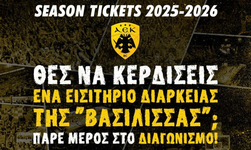 Το sport-fm.gr σε συνεργασία με την ΚΑΕ ΑΕΚ δίνει την ευκαιρία σε 10 τυχερούς να κερδίσουν ένα εισιτήριο διαρκείας για τη νέα αγωνιστική σεζόν.