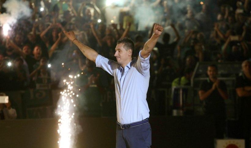 Εμφανώς συγκινημένος από την αποθέωση του κόσμου, ο Δημήτρης Διαμαντίδης πήρε το μικρόφωνο στο κέντρο του ΟΑΚΑ και ευχαρίστησε όλους όσοι ήταν δίπλα του σε αυτή την τεράστια καριέρα που είχε!
