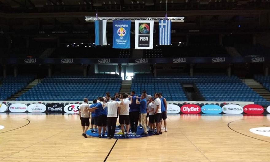 Η ελληνική ομάδα, που έκανε το 5/5 στο Τελ Αβίβ απέναντι στο Ισραήλ την Πέμπτη, έκανε το πρωί του Σαββάτου την πρώτη της προπόνηση στο Ταλίν και τη σύγχρονη «Saku Arena» (10.000 θεατών).