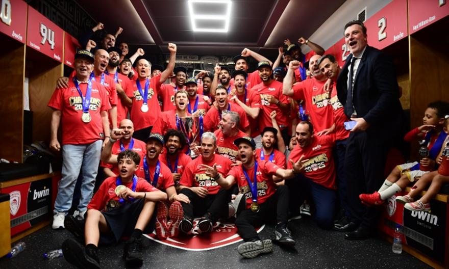 «Ο ΟΛΥΜΠΙΑΚΟΣ Σ.Φ.Π. εκφράζει τα θερμά του συγχαρητήρια στην ομάδα μπάσκετ του Ολυμπιακού μας και σε όλους όσοι συνέβαλαν στην κατάκτηση του 15ου Πρωταθλήματος.