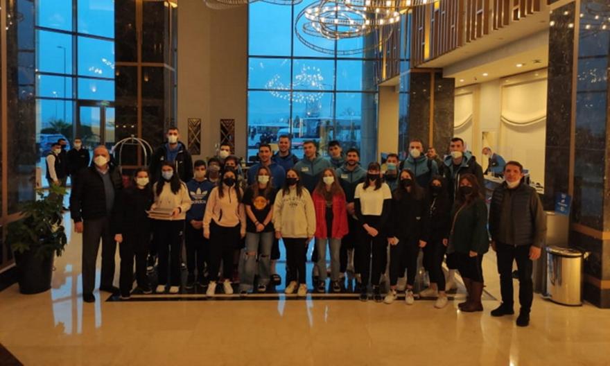 Μαθητές και μαθήτριες από το Ζωγράφειο Λύκειο της Πόλης, το ελληνικό σχολείο το οποίο μετράει 54 μαθητές, με τη συνοδεία του διευθυντή του Γιάννη Δεμιρτζόγλου, του υποδιευθυντή ο οποίος είναι Τούρκος και της ψυχολόγου Κατερίνα Τζίτζη, χειροκρότησαν την ομάδα και τη γέμισαν με ευχές και θετική αύρα εν όψει της αυριανής αναμέτρησης με την Τουρκία.