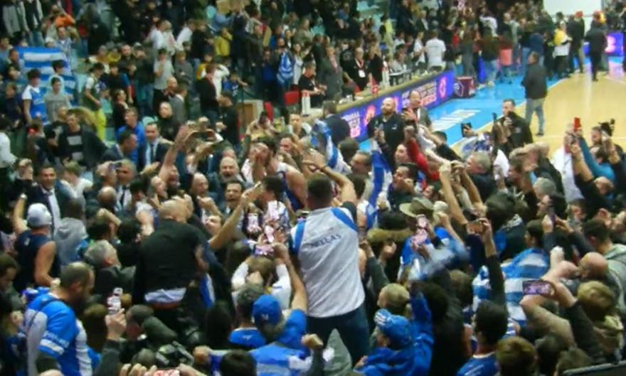 Δείτε νέα πλάνα, από την κερκίδα, με το γαλανόλευκο «κουβάρι» των πανηγυρισμών.