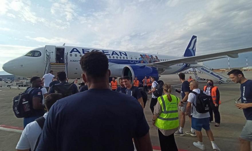 Το ταξίδι έγινε με το νέο αεροσκάφος της Aegean (χορηγού της «επίσημης αγαπημένης»), που φέρει τις μορφές έξι παικτών, του Γιάννη και Θανάση Αντετοκούνμπο, του Κώστα Σλούκα, του Νικ Καλάθη, του Κώστα Παπανικολάου και του Γιώργου Παπαγιάννη.