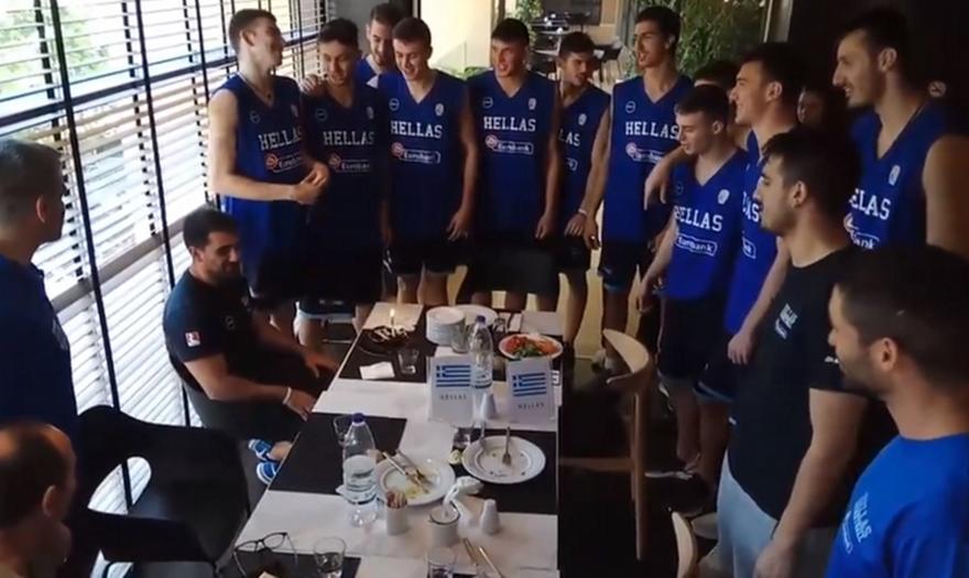 Λίγες ώρες πριν το ματς με την Αργεντινή (20:30) για τις θέσεις 9-12 του Παγκοσμίου Κυπέλλου U19, η Εθνική χαλάρωσε επί τη ευκαιρία των γενεθλίων του Δημήτρη Βαρβούνη.