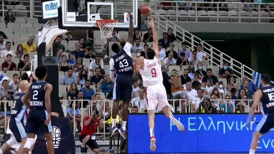 Συγκεκριμένα, ο Κώστας Αντετοκούνμπο κάρφωσε εντυπωσιακά και ο Θανάσης Αντετοκούνμπο σταμάτησε δυναμικά τον Γκιόρκι Σερμαντίνι.