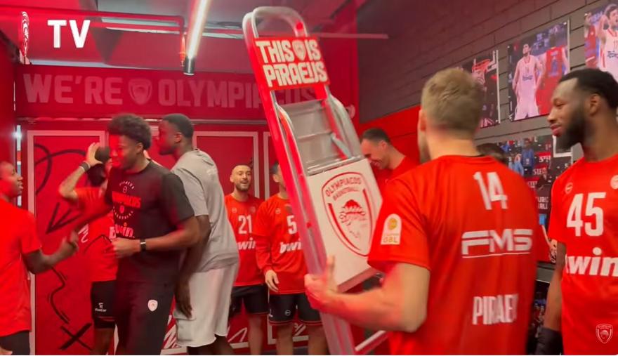 Δείτε όσα κατέγραψε η παρακάμερα των «ερυθρόλευκων», όπου ξεχωρίζει η κίνηση του Σάσα Βεζένκοφ να εμφανιστεί με... σκάλα ανά χείρας στα αποδυτήρια λίγο πριν την έναρξη της προθέρμανσης.