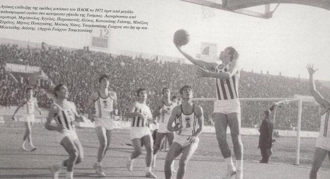 Ήταν τη σεζόν 1971-72, όταν ο ΠΑΟΚ αγωνίστηκε με ριγέ φανέλα, η οποία βεβαίως ήταν εναρμονισμένη και με την εποχή. Σε εντελώς διαφορετική γραμμή και σχέδιο από ότι σήμερα. Αδιάψευστος μάρτυρας οι φωτογραφίες από το αρχείο του παλαίμαχου καλαθοσφαιριστή του ΠΑΟΚ Γιώργου Τσομπανάκη.