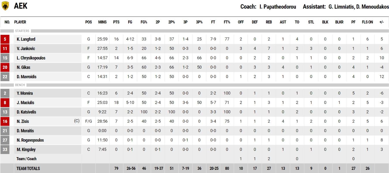 Κορυφαίοι για την Ένωση -που έφτασε τις 20 συνεχόμενες νίκες στο πρωτάθλημα- οι Ματσιούλις (18 πόντοι) και Χρυσικόπουλος (14 πόντοι), καθοριστικός στα κρίσιμα ο Λάνγκφορντ (16 πόντοι). Ντεμπούτο με την κιτρινόμαυρη φανέλα έκανε ο νεοαποκτηθείς σέντερ Κίνγκσλεϊ.