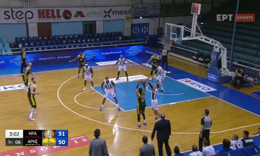 Ο Άρης πραγματοποιεί εξαιρετική εμφάνιση στο Ιβανώφειο κόντρα στον Ηρακλή, με τον Τσάλμερς να πετυχαίνει δύο σερί τρίποντα στα μέσα της τρίτης περιόδου και να ανεβάζει τη διαφορά στο +24 για τους «κίτρινους»!