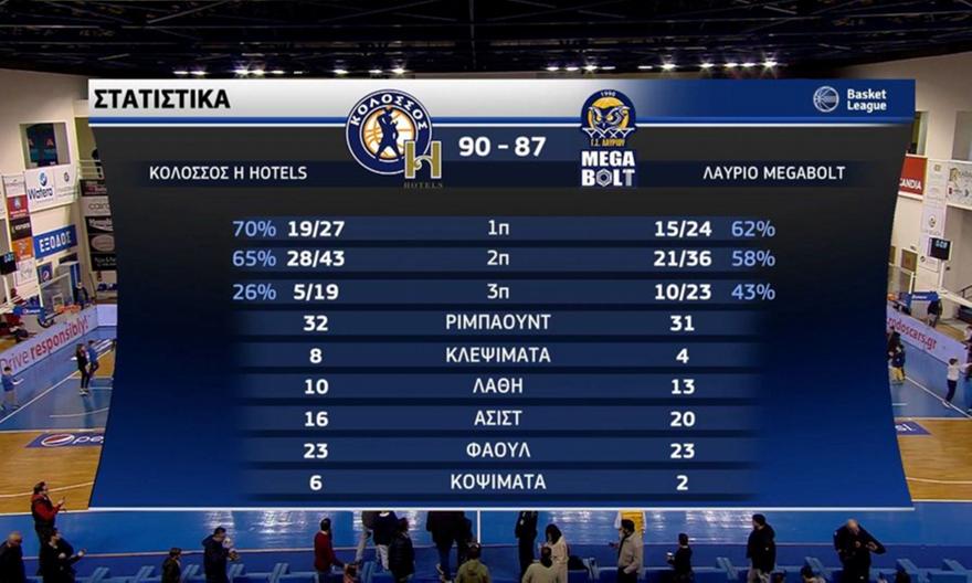 Ο Κολοσσός μπορεί να ζορίστηκε, ωστόσο στο φινάλε λύγισε το μαχητικό Λαύριο με σκορ 90-87 στη Ρόδο, κλείνοντας έτσι με τον καλύτερο δυνατό τρόπο τον πρώτο γύρο της Basket League με ρεκόρ 6-5!