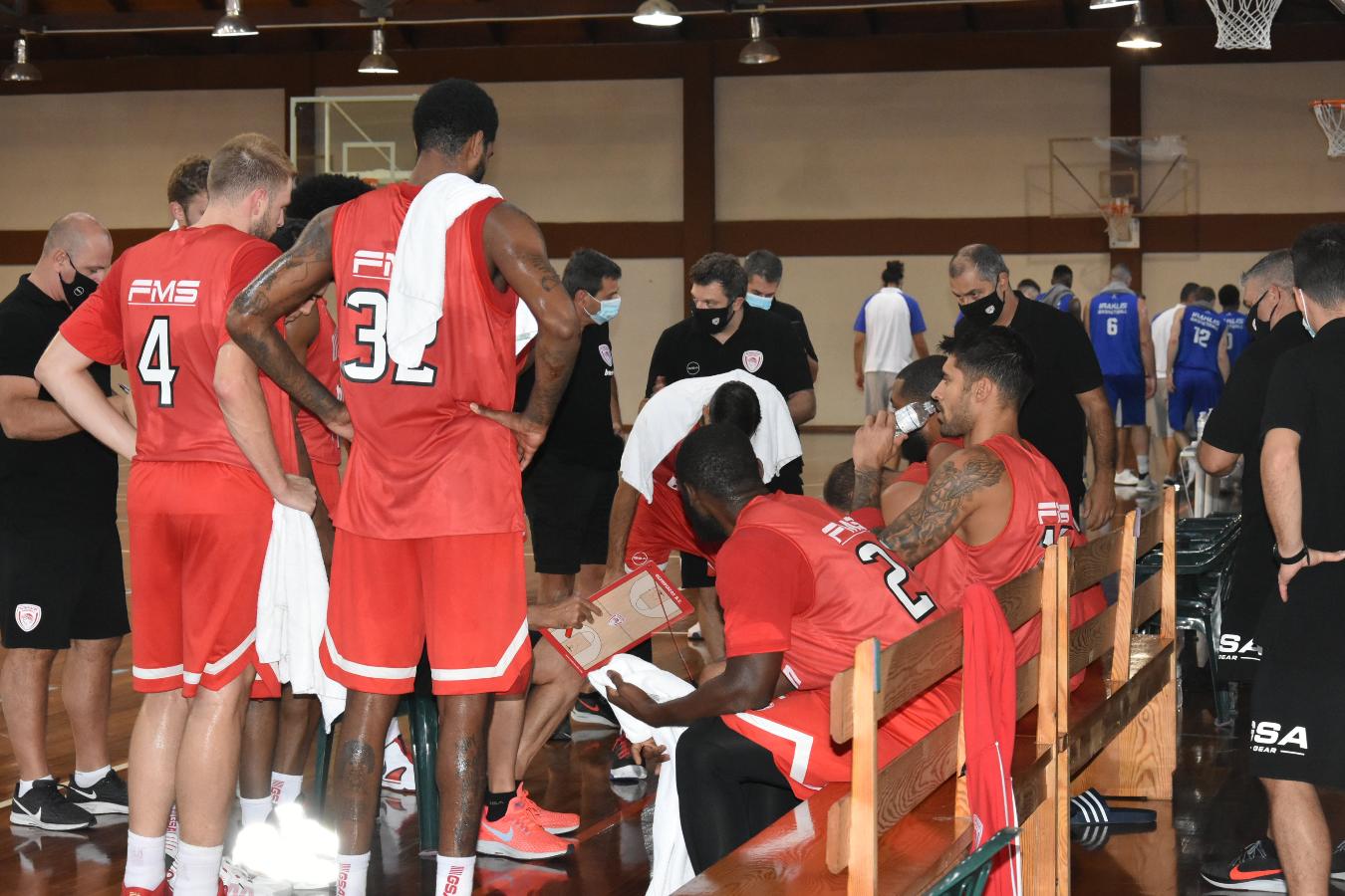 Με τους Σλούκα, ΜακΚίσικ, Χαραλαμπόπουλο, Βεζένκοφ και Έλις στη βασική πεντάδα παρέταξε τους «ερυθρόλευκους» ο Γιώργος Μπαρτζώκας, ενώ ο Κώστας Παπανικολάου, ο οποίος ταλαιπωρήθηκε από τον κορωνοϊό και ενσωματώθηκε μεσοβδόμαδα στην ομάδα ήταν εκτός αποστολής. Όπως και οι Αντώνης Κόνιαρης, Γιαννούλης Λαρεντζάκης και Βασίλης Χρηστίδης. Λόγω των αρκετών απουσιών του «Γηραιού» , δεν παίχτηκαν τέσσερα δεκάλεπτα, αλλά τρία δεκάλεπτα και ένα 8λεπτό.