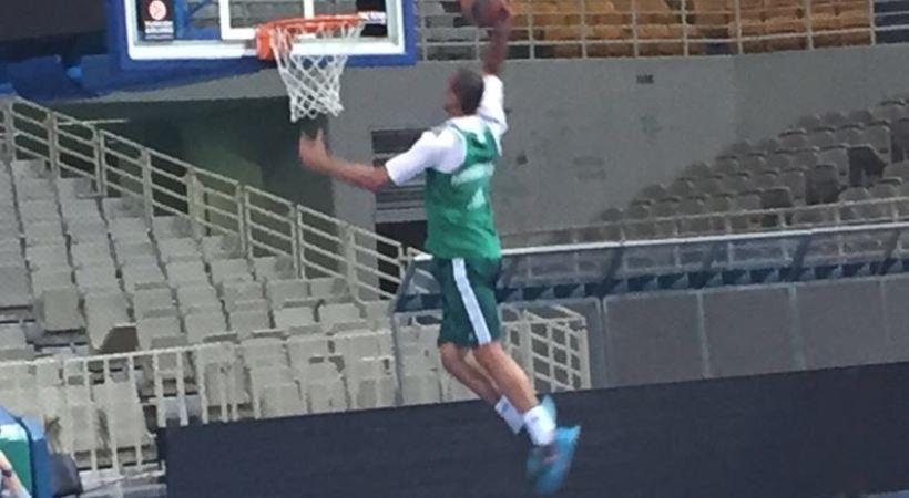 Στο πρόγραμμα της ημέρας συμμετείχε για πρώτη φορά με την πράσινη φανέλα ο Βινς Χάντερ, ο οποίος αφίχθη τη Δευτέρα στην Αθήνα.