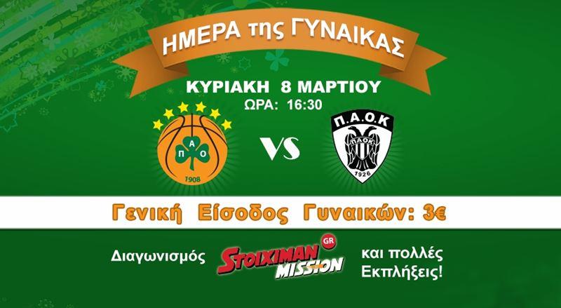Η πρόσκληση ισχύει για τον αγώνα της Κυριακής 8/3/2015 και ώρα 4.30μ.μ στο ΟΑΚΑ με αντίπαλο τον ΠΑΟΚ, που συμπίπτει με την Ημέρα της Γυναίκας.