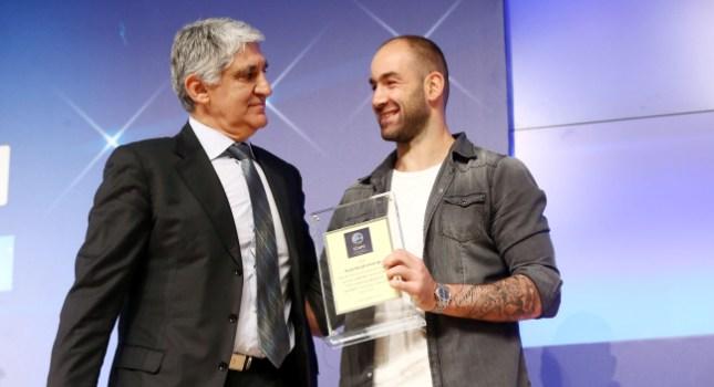 Ο Κώστας Σλούκας από τη μεριά του ανέφερε: «Είναι πολύ μεγάλη τιμή για μενα. Η περσινή χρονιά ήταν περίεργη για εμένα και την ομάδα μου. Ξεκίνησε με τον χειρότερο τρόπο, αλλά η έλευση του κ. Σφαιρόπουλου άλλαξε τα πράγματα. Προσωπικά έπαιξα το καλύτερο μπάσκετ. Είμαι χαρούμενος που στο τέλος κατακτήσαμε το πρωτάθλημα».
