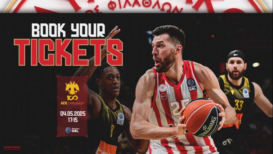 Η Κ.Α.Ε. ΟΛΥΜΠΙΑΚΟΣ θα ήθελε να ενημερώσει τους φιλάθλους της ότι τα εισιτήρια για τον 1ο ημιτελικό αγώνα της STOIXIMAN GBL με την AEK που θα διεξαχθεί την Κυριακή 04/05/2025 με ώρα έναρξης 17:15 θα είναι διαθέσιμα προς πώληση από την Τετάρτη 30/04/2025 και ώρα 10:00, μέσω του www.olympiacosbc.gr, μέσω του www.ticketmaster.gr, είτε μέσω του τηλεφωνικού κέντρου, στο τηλέφωνο 2111996007.