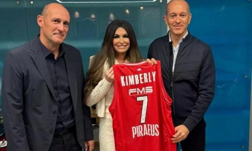 Στην ανάρτηση που έκανε ο Ολυμπιακός στα κοινωνικά δίκτυα, δημοσιεύτηκε και φωτογραφία όπου οι Αγγελόπουλοι ποζάρουν μαζί με την Kimberly Guilfoyle, η οποία κρατά στα χέρια της μια ερυθρόλευκη φανέλα με το όνομά της.
