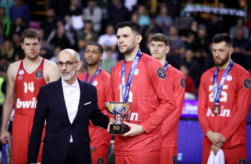Μετά το τέλος του αγώνα, οι «ερυθρόλευκοι» ήταν εκείνοι που ανέβηκαν πρώτοι στο ειδικά διαμορφωμένο βάθρο για να παραλάβουν τα μετάλλια των φιναλίστ, με την απογοήτευση να είναι έκδηλη στα πρόσωπα των παικτών του Γιώργου Μπαρτζώκα, μιας και έφτασαν πολύ κοντά στην τέταρτη διαδοχική τους κατάκτηση.