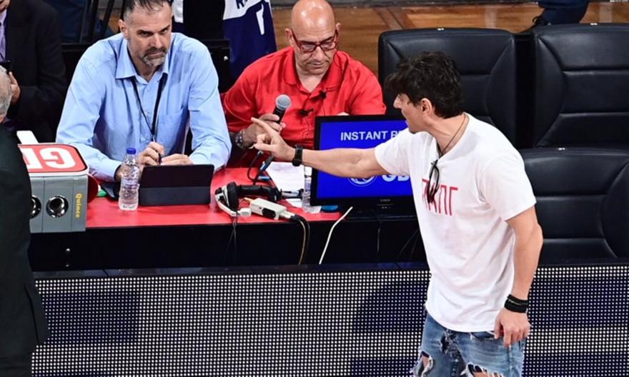 Λίγο πριν το τζάμπολ της αναμέτρησης, ο ισχυρός άνδρας των «πράσινων» βγήκε στο παρκέ μέσα σε έντονες αποδοκιμασίες και υβριστικά συνθήματα εις βάρος του.