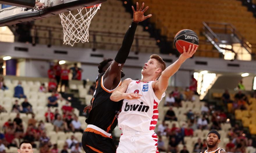 Κώστας Σλούκας και Τόμας Γουόκαπ ξεκόλλησαν επιθετικά τον Ολυμπιακό στο φινάλε της πρώτης και στις αρχές της δεύτερης περιόδου του αγώνα κόντρα στον Προμηθέα Πάτρας.