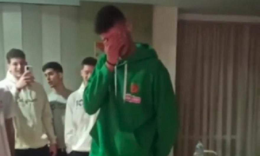 Οι «πράσινοι» περίμεναν τον ύψους 2.10 πάουερ φόργουορντ/σέντερ, με μία τούρτα έκπληξη, για να γιορτάσουν τα 18α γενέθλιά του.