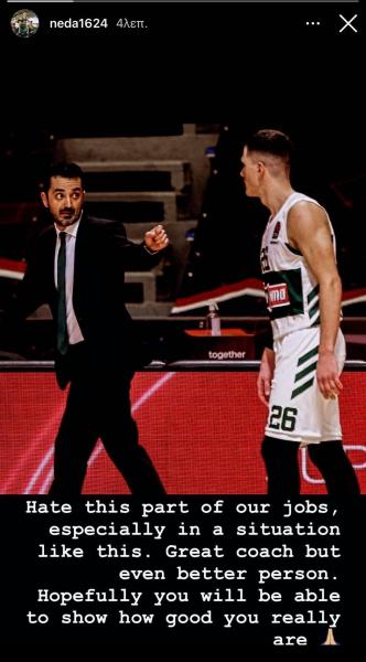 Με ένα ποστάρισμα στον προσωπικό του λογαριασμό στο Instagram, ο Νεμάνια Νέντοβιτς αποχαιρέτησε τον Γιώργο Βόβορα από την τεχνική ηγεσία του Παναθηναϊκού.